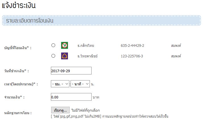 แจ้งการชำระเงินผ่านทางหน้าเว็บไซต์
