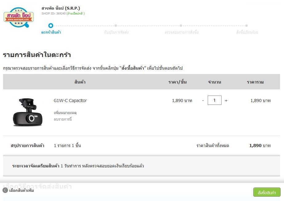 ให้คลิกปุ่มสั่งซื้อสินค้าใน